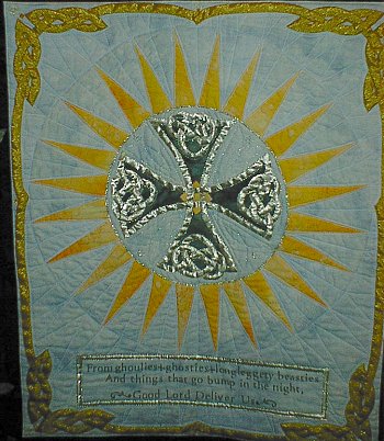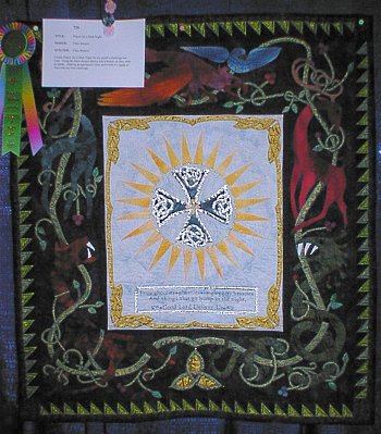 This quilt features a Celtic cross in the center and zoomorphic designs in the border. This quilt received an Honorable Mention in the Artisan Small Quilt Category.